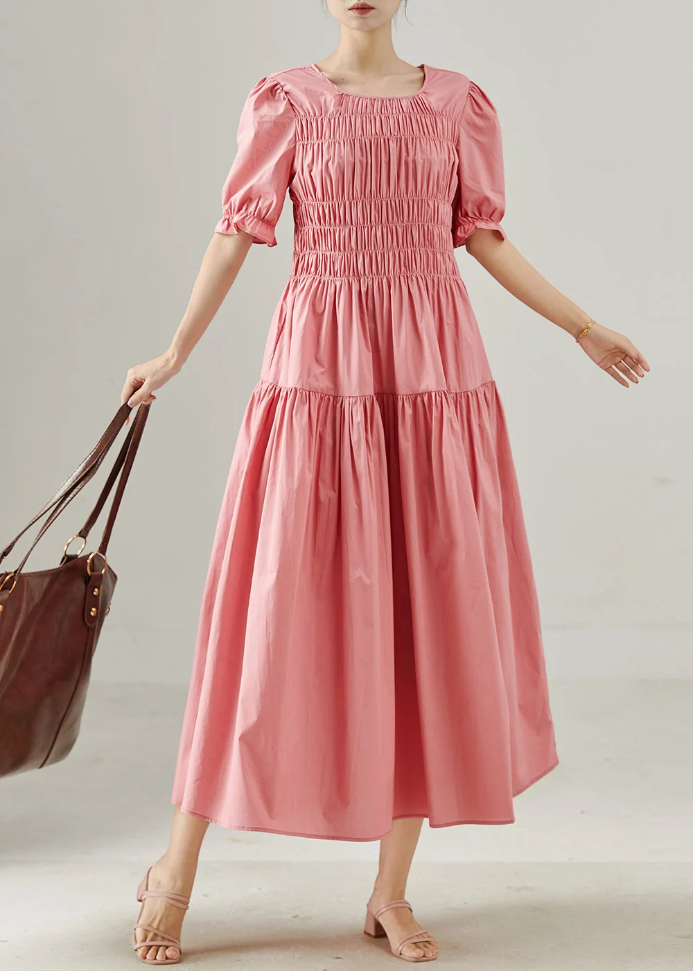 Boho Pink Wrinkled Silm Fit Cotton Holiday Dress Summer