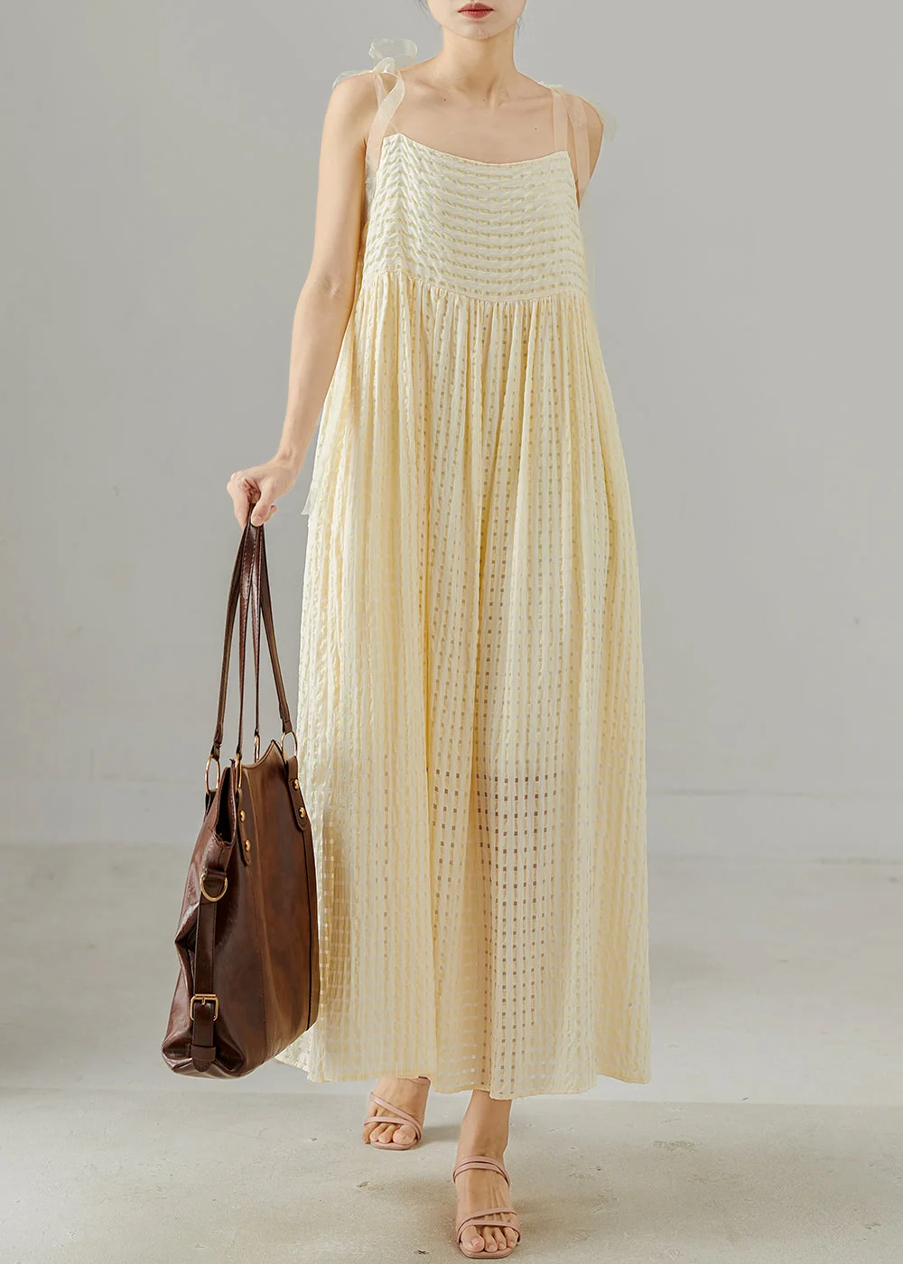 Fashion Yellow Hollow Out Cotton Cami Dresses Summer