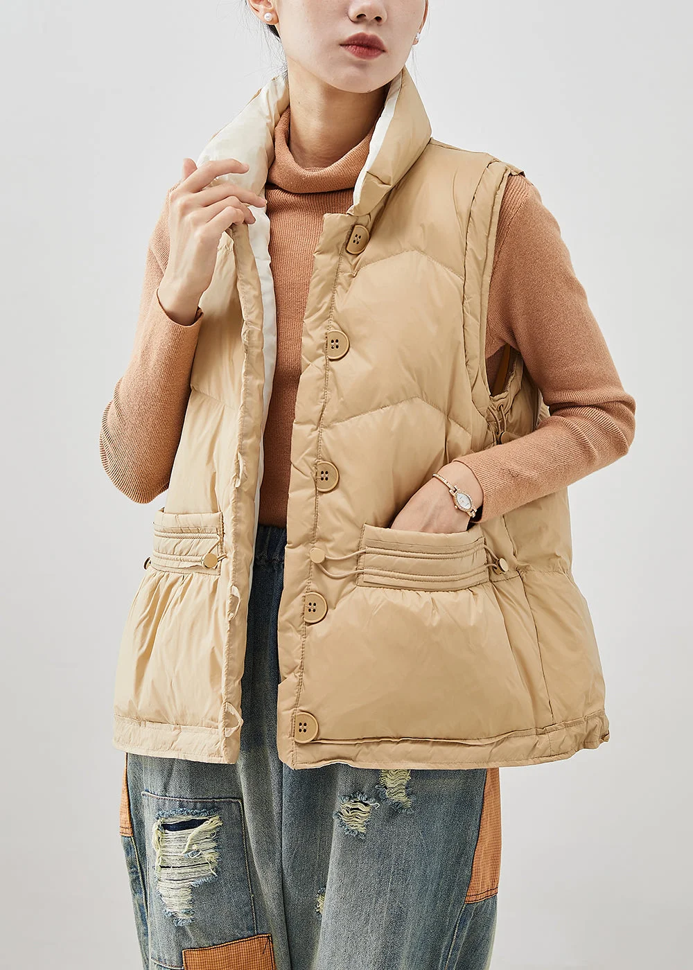 Italian Khaki Stand Collar Drawstring Duck Down Vest Tops Winter