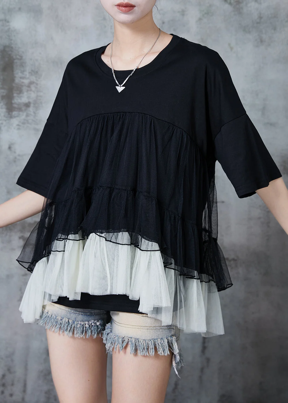 Fine Black Oversized Patchwork Tulle Tanks Summer