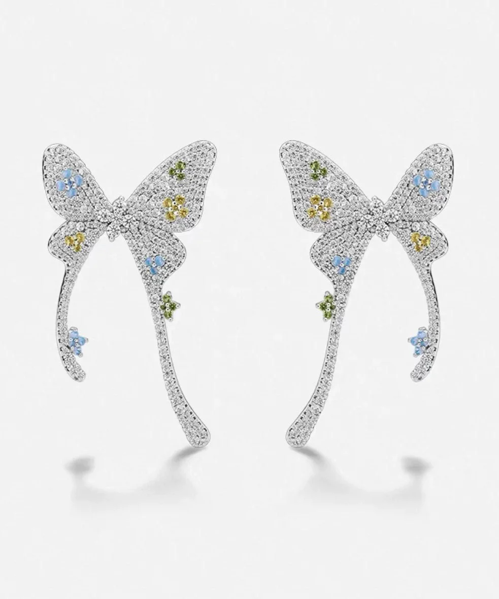Fine Silk Copper Overgold Zircon Butterfly Stud Earrings